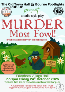 Join us at Edenham Village Hall for a fun night of sleuthing, raising funds for Bourne Town Hall regeneration project and Bourne Footlights.