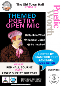 In partnership with The Aveland History Group and as part of the Worth 200 celebrations, join us at 2.15pm on Sunday 12th October 2025 for a themed poetry open mic.