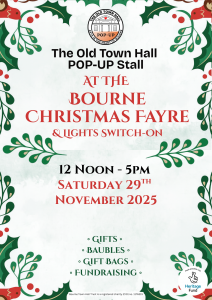 The Old Town Hall will have a Pop-Up stall at the Bourne Christmas Fayre!