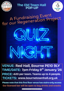 All proceeds from this event go towards our Bourne Town Hall regeneration project.